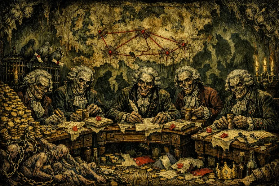 This is power’s true face in the contemporary world: not generals moving armies, not politicians signing treaties, but bankers deciding whom to lend money for fighting and under what conditions, rendering every war not a conflict between nations but a commercial transaction where peoples massacre each other reciprocally while Rothschilds and other financial dynasties count profits on both sides.